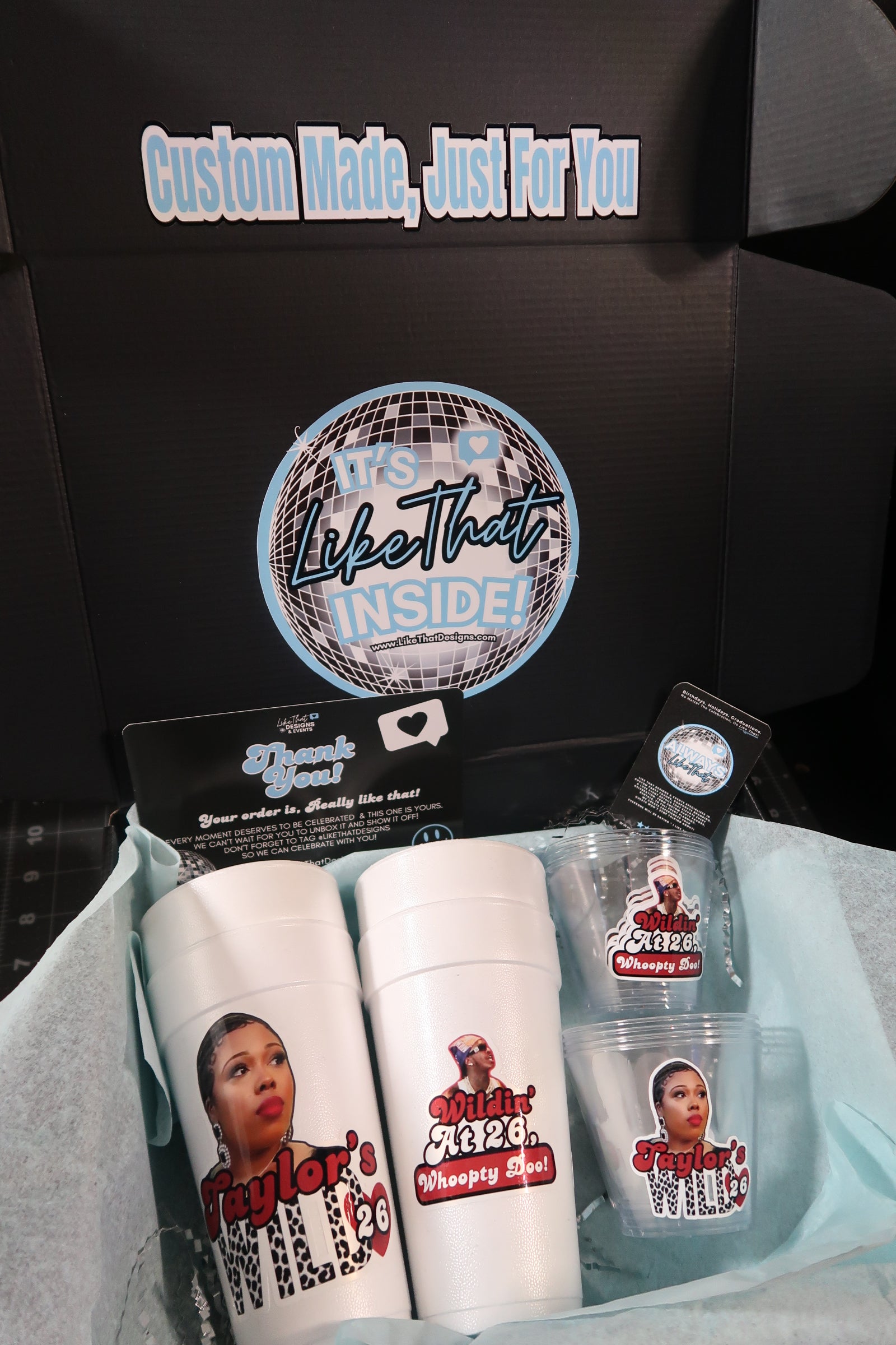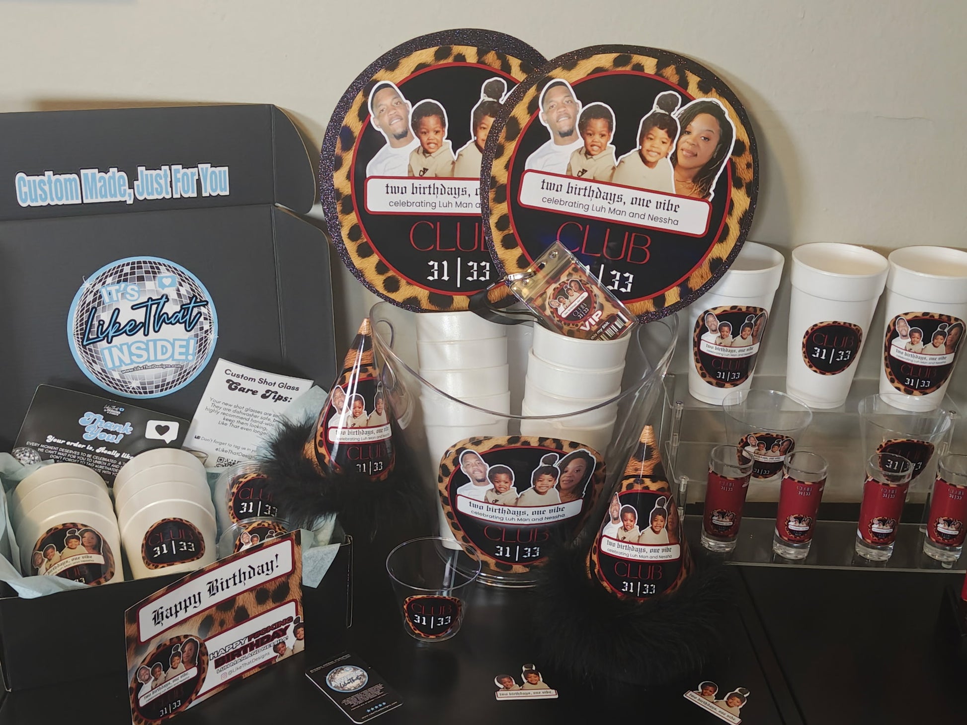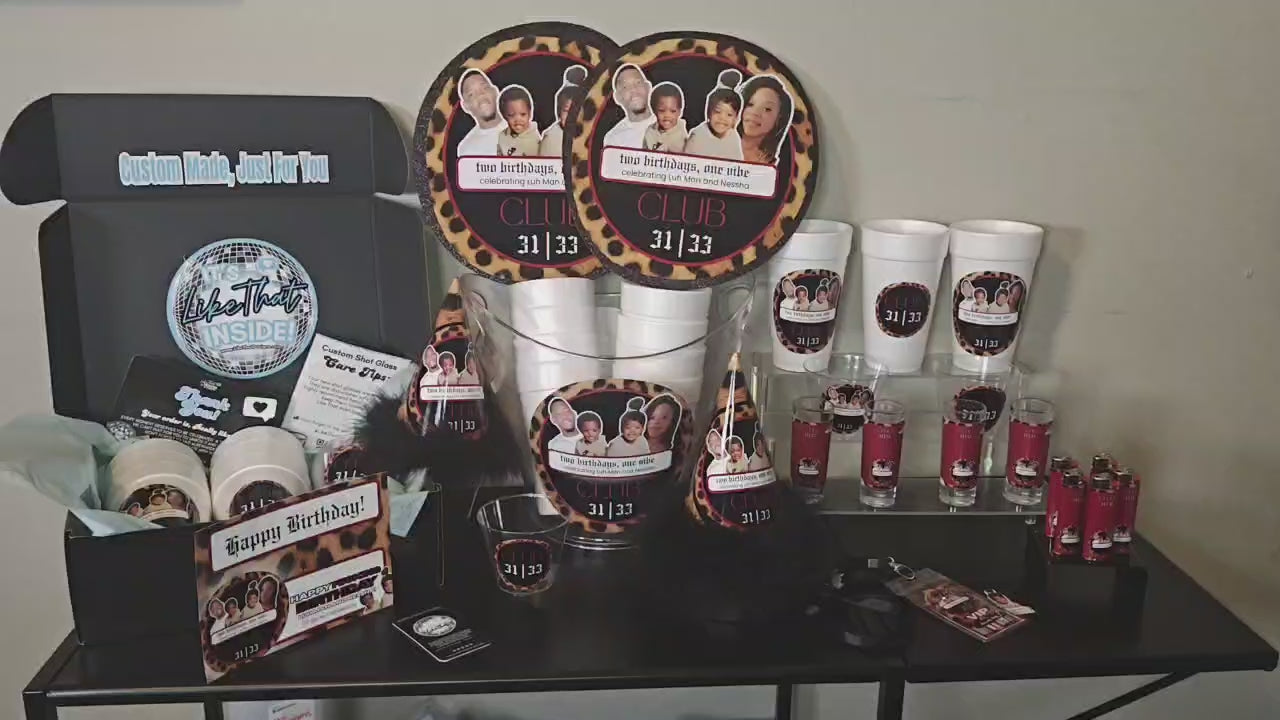 Attach your photos, theme, color scheme, age, any specific wording along with any other details we need to know to make your Custom Bottle Service Set, LIKE THAT!