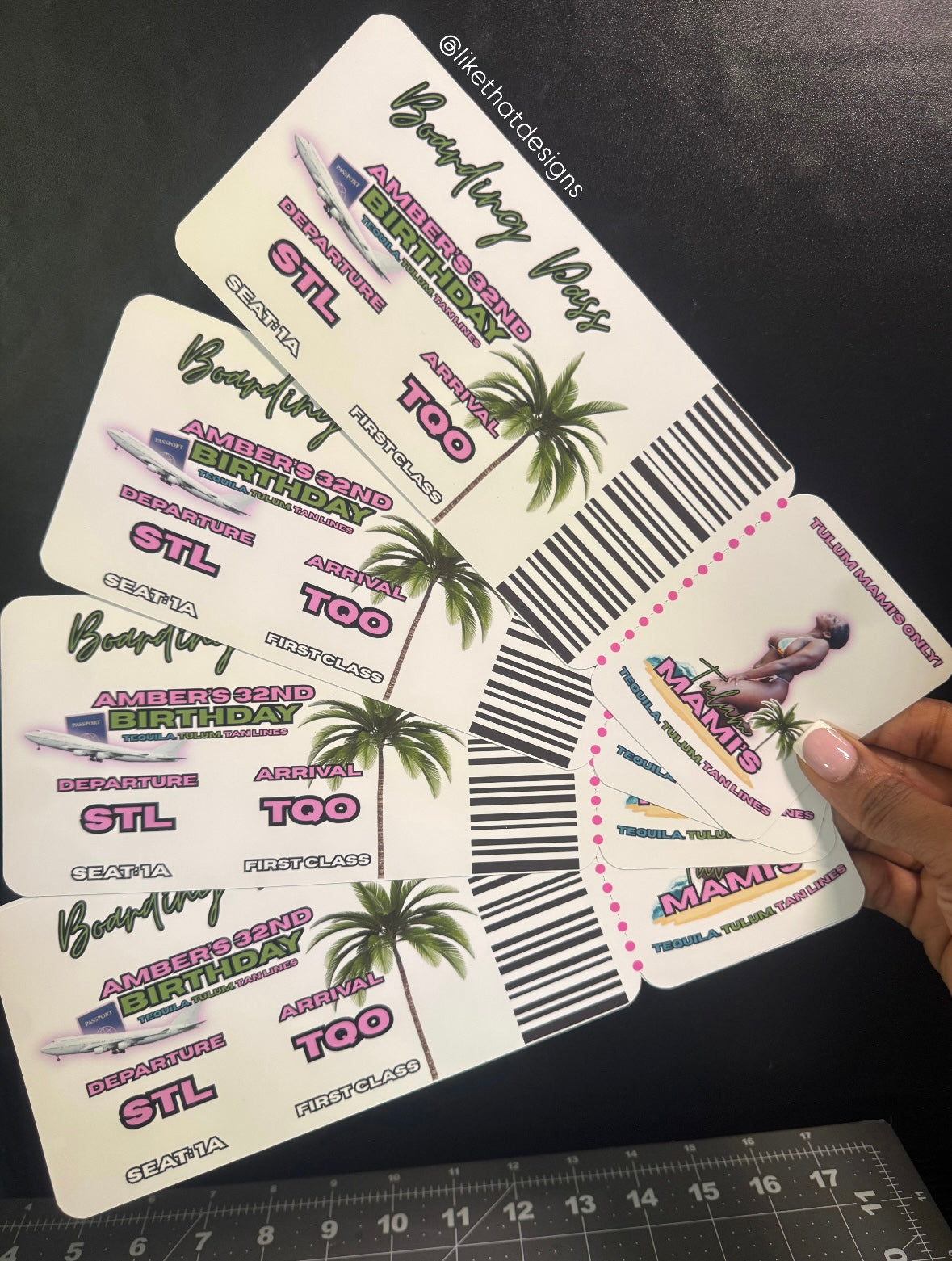 Give your celebration that first-class boarding feel! Our custom boarding passes are designed to perfectly match your theme! Whether it’s a birthday trip, girl’s trip, bachelorette, or bridal shower! They’re the detail that makes everyone say “oh, I like that!”