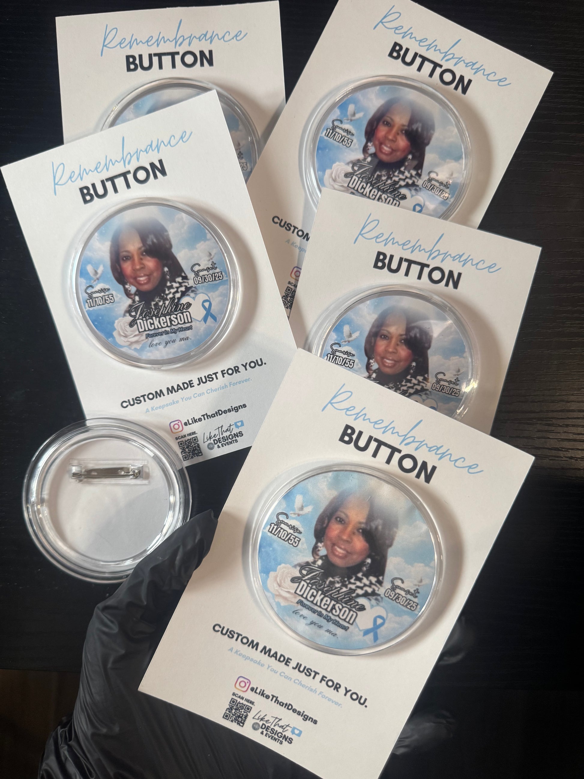 Honor your loved one with a beautifully crafted custom remembrance button (memorial button) , thoughtfully designed as a keepsake to cherish forever.