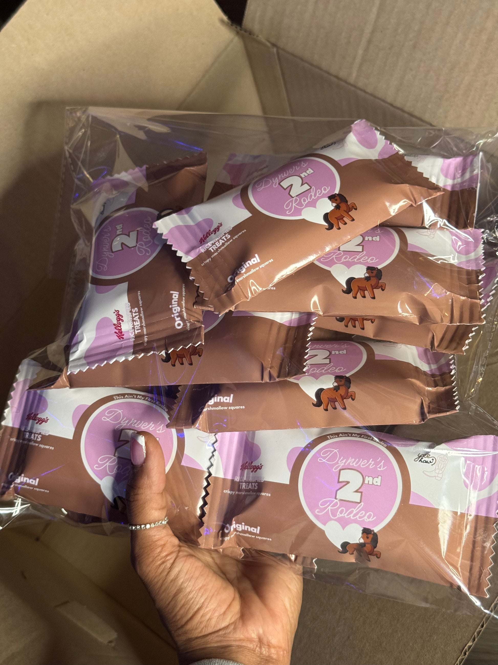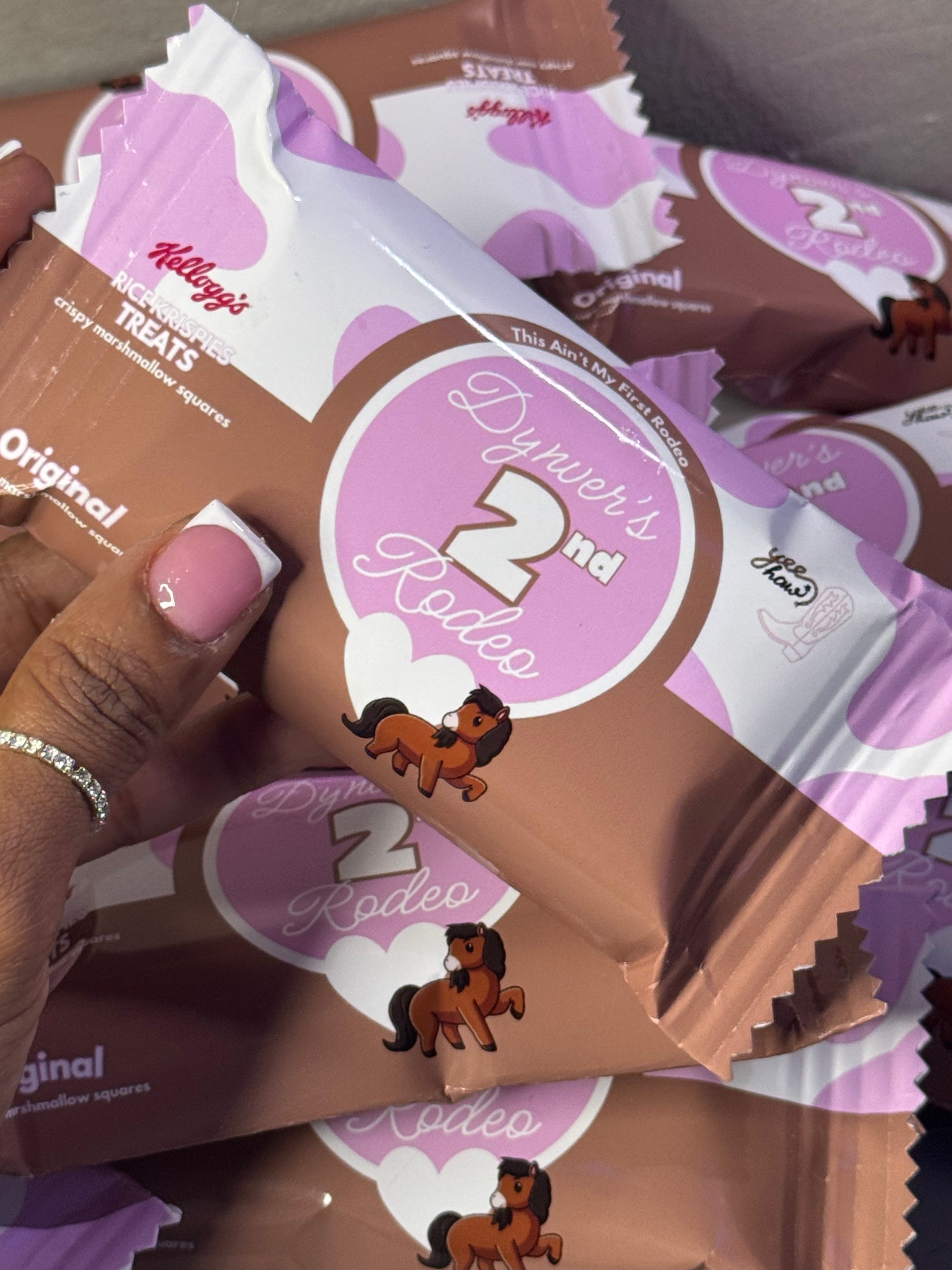 Add a sweet touch of style to your celebration with our custom Rice Krispy Treat party favors! Each treat comes freshly made, soft, and unforgettably delicious - wrapped in your event’s custom design to match your theme perfectly. From baby showers to birthdays, our treats are dressed to impress and ready to serve—no assembly required. Luxe, fun, and totally photo-ready, LIKE THAT! These favors are the perfect bite-sized way to say thank you.